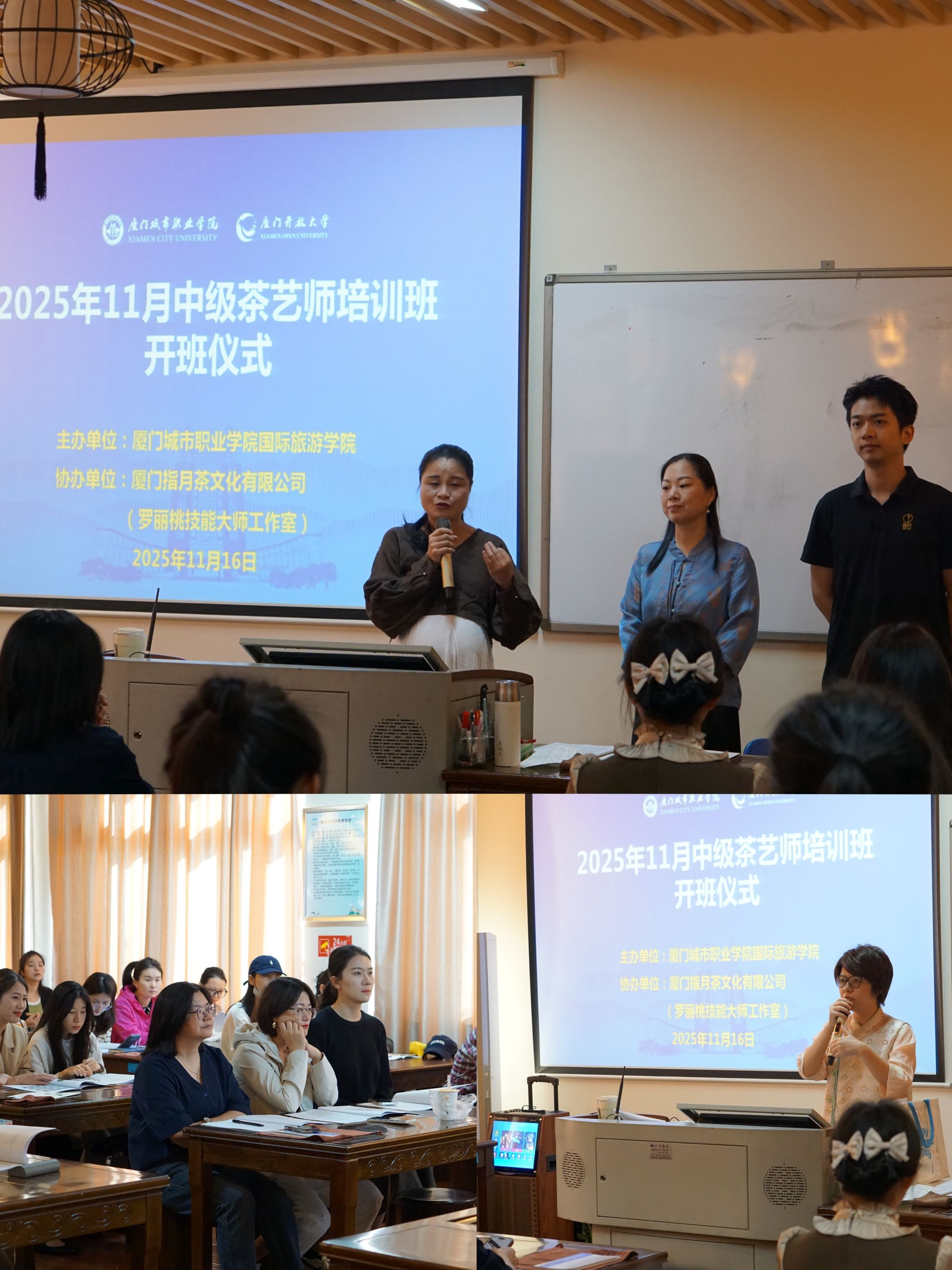 近日,国际旅游学院举办中级茶艺师培训,31名厦门市五星级酒店员工顺利结业,实操考核环节更是达到100%合格。